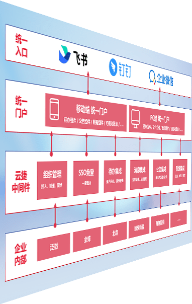 对协作平台提供支持服务,,支持企业应用与协作平台对接,,包含组织同步、、消息集成、、、待办集成等。。。支持目前主流的协作平台:钉钉、、、、企微和飞书。。